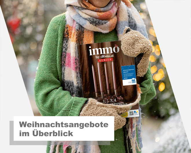 mit unserem heutigen Weihnachts-Newsletter möchten wir Ihnen stimmungsvolle Angebote rund um die Weihnachtszeit präsentieren, die in den kommenden Wochen in den Immobilienteilen der Tageszeitungen Kurier, Die Presse und Der Standard erscheinen. Gerade zum Jahresende bieten deren Immobilienteile inspirierende Einblicke in aktuelle Marktbewegungen, besondere Projekte und die Trends, die das kommende Jahr prägen werden.